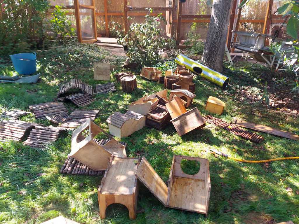 Da Fred weiterhin die Leitung der Bauaufsicht inne hat, durfte er nicht fehlen bei den Restarbeiten im Nagergehege:-). Dort ist er aber auch allem auf den Grund gegangen.
